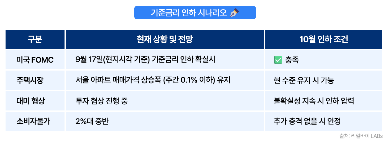๋ฏธ๊ตญ์ 9์ ๊ธ๋ฆฌ ์ธํ๊ฐ ํ๊ตญ์ ๊ธ์ ์ ์ธ ์ ํธ๋ก ์์ฉํ์ง๋ง, ๊ตญ๋ด ์ฃผํ์์ฅ์ ์์ ํ ์ฌ๋ถ์ ๋๋ฏธ ํฌ์ ํ์ ์งํ ์ํฉ์ด ์ค์ํ ๋ณ์๊ฐ ๋ ๊ฒ์ธ๋ฐ์. ํนํ, ์ฃผํ์์ฅ์ด ์ถ๊ฐ ๊ท์ ๋ก ์์ ๋๋ค๋ฉด 10์ ๊ธ๋ฆฌ ์ธํ ๊ฐ๋ฅ์ฑ์ด ๋์์ง์ง๋ง, ์๊ธฐ์น ์์ ๊ณต๊ธ ์ถฉ๊ฒฉ์ผ๋ก ๋ฌผ๊ฐ ์์น์ธ๊ฐ ์ง์๋ ๊ฒฝ์ฐ ์ธํ ์์ ์ด ์ง์ฐ๋ ์๋ ์์ต๋๋ค.