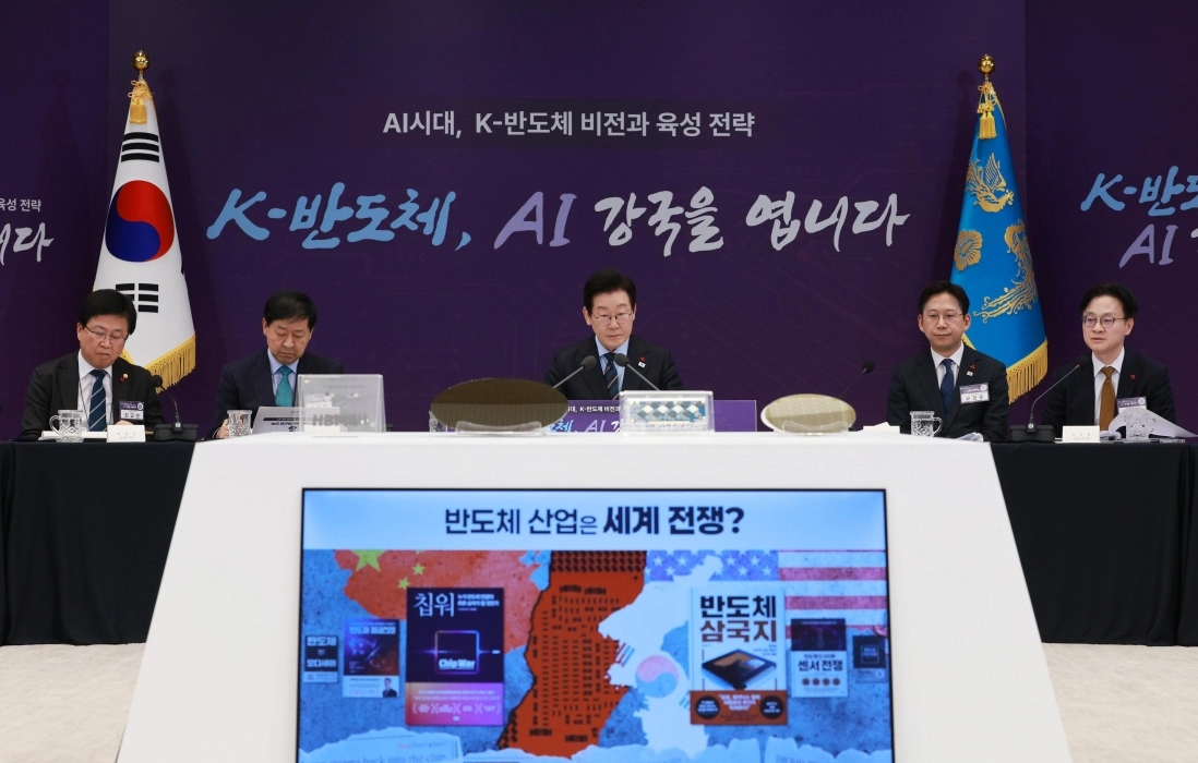 ๏งก๋ํต๋ น์ด 10์ผ ์ฉ์ฐ ๋ํต๋ น์ค์์ โ์ธ๊ณต์ง๋ฅ(AI) ์๋, K๋ฐ๋์ฒด ๋น์ ๊ณผ ์ก์ฑ์ ๋ต ๋ณด๊ณ ํโ๋ฅผ ์ฃผ์ฌํ๊ณ ์๋ค. [์ฌ์ง=๋ด์์ค] |
